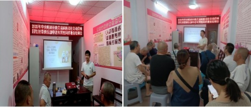 2025年9月11日,遂寧市紅絲帶俱樂部在遂寧市紅絲帶俱樂部內(nèi)召開了2025年中央財政補助艾滋病防治社會動員項目《遂寧市紅絲帶俱樂部中老年男性干預(yù)項目》同伴教育員培訓(xùn)會活動。 遂寧市紅絲帶俱樂部邀請了遂寧市CDC艾防科科長祝皓、遂寧市船山區(qū)CDC艾防科科員曾海輝對10名高危中老年男性同伴教育員進行了艾滋病預(yù)防知識、“四免、一關(guān)懷”政策、艾滋病危害性認識、艾滋病檢測與治療、艾滋病的法律、法規(guī)以及同伴教育員在執(zhí)行項目活動中的職責。